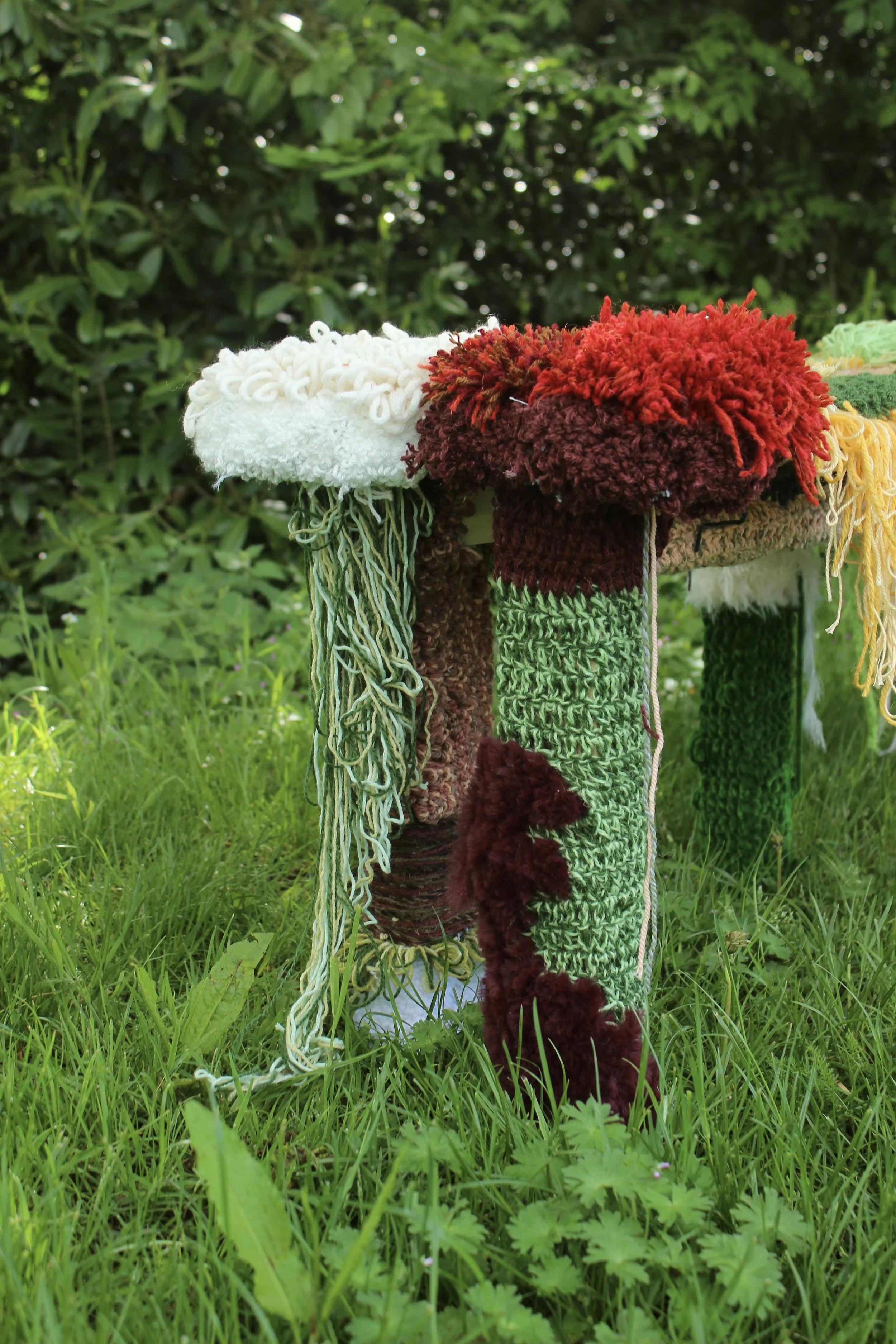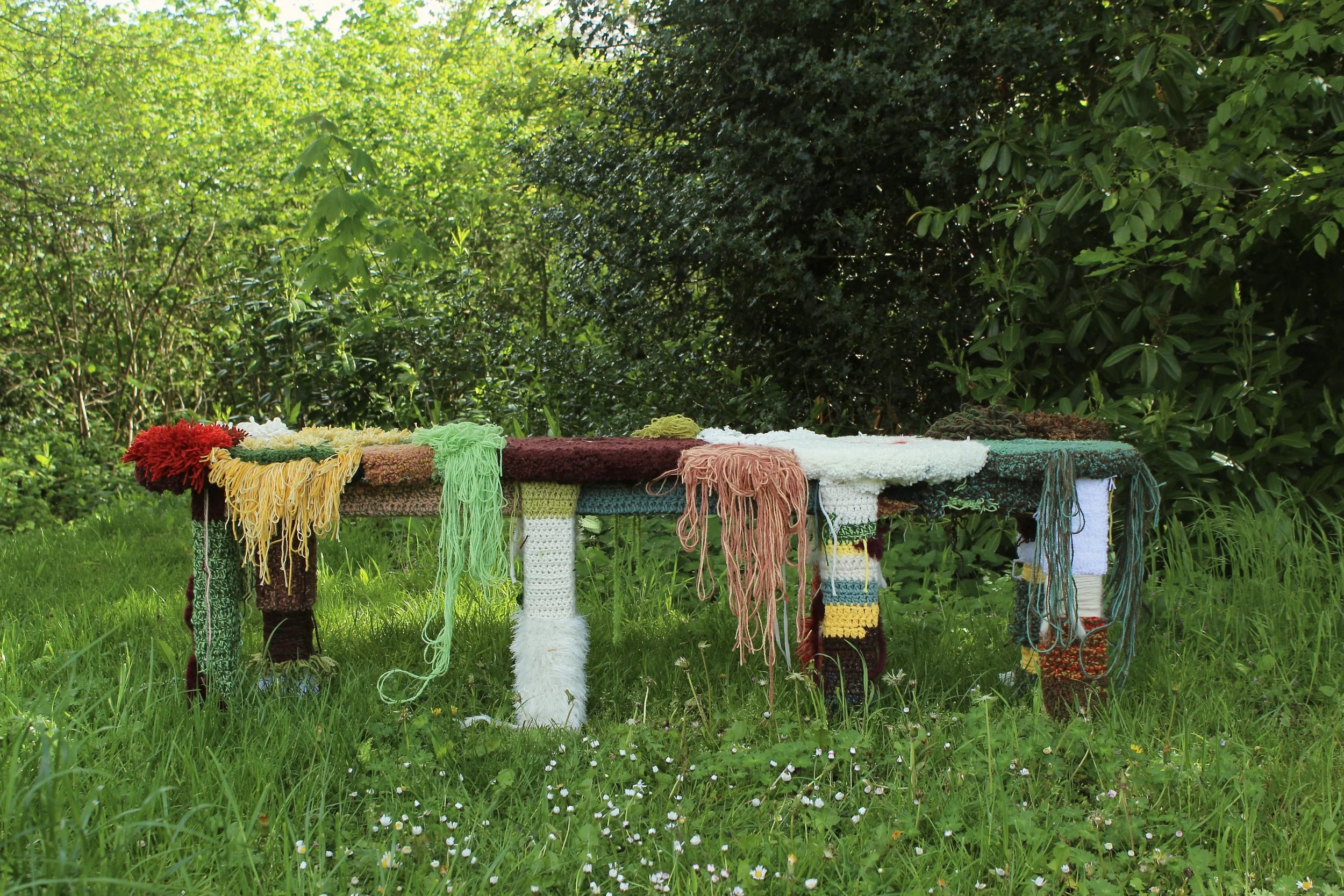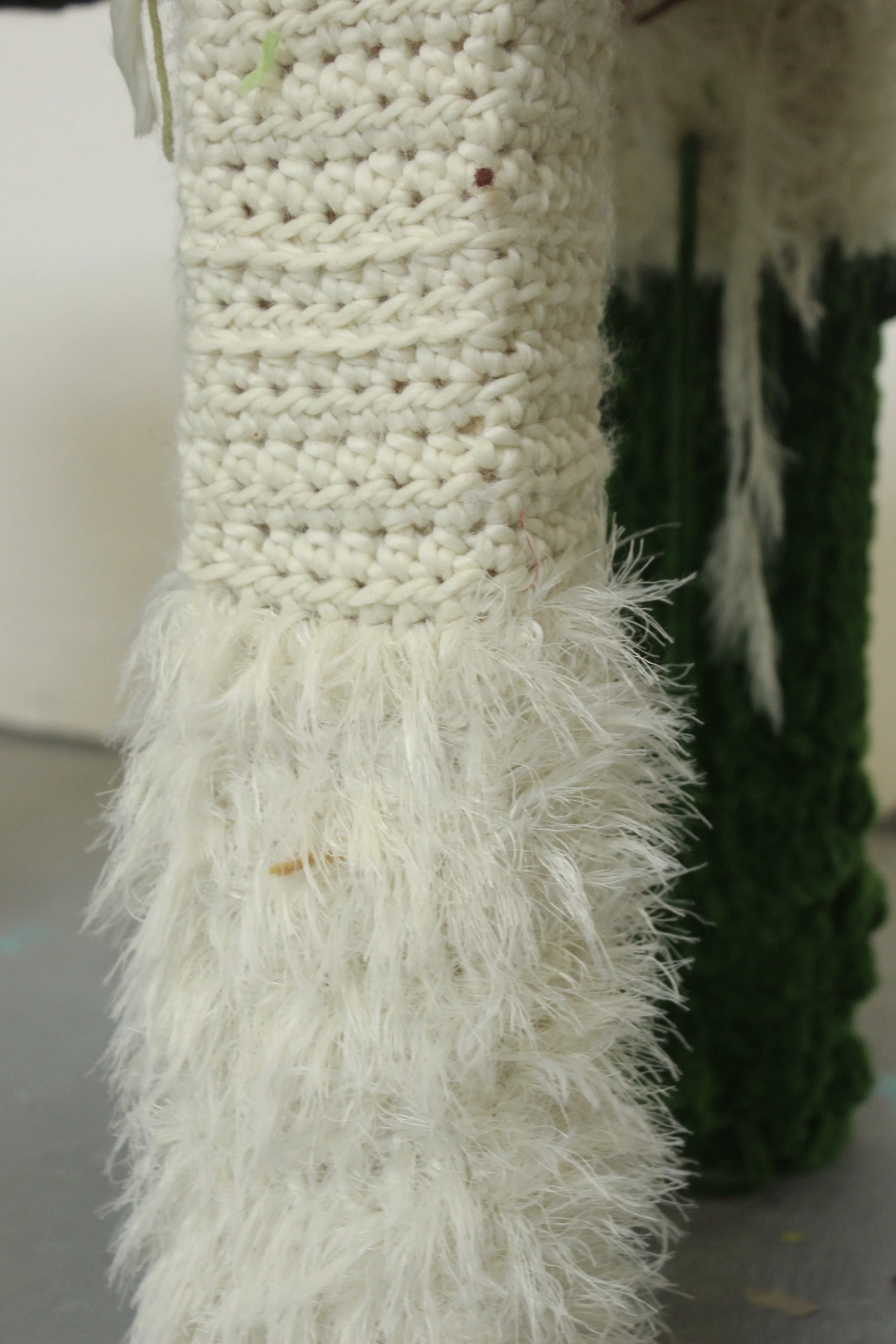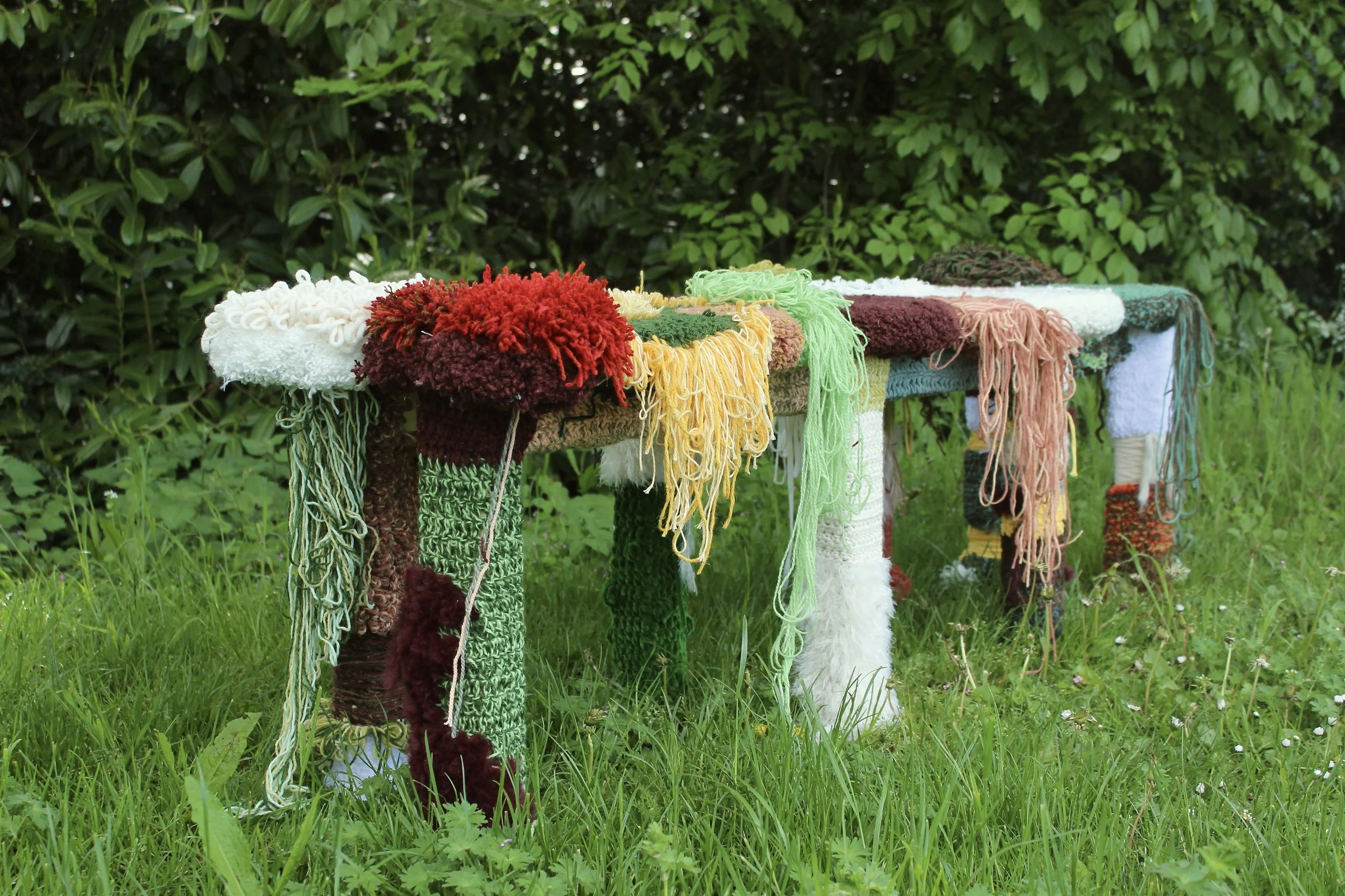 Cotton, lambs wool, acrylic, pinewood, MDF.